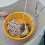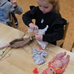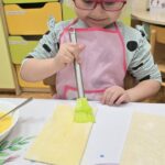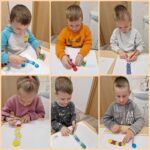 ,,Drugelių‘‘ grupėje vyko kūrybinė ir patyriminė veikla ,,Popieriaus ir virvės dialogas‘‘. Veiklos metu vaikai iš virvių kūrė paveikslus ant grindų, lygino virves, jomis matavo savo ūgį. Virvę pasitelkė ir žaidimui – kas pralys pro ją. Vėliau virvė buvo naudojama ir kūrybiniame procese – ja tapyta ant popieriaus lapo. Virvė tapo ne tik priemone, bet ir dialogo partneriu, padedančiu išreikšti mintis, judesį ir emocijas.