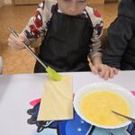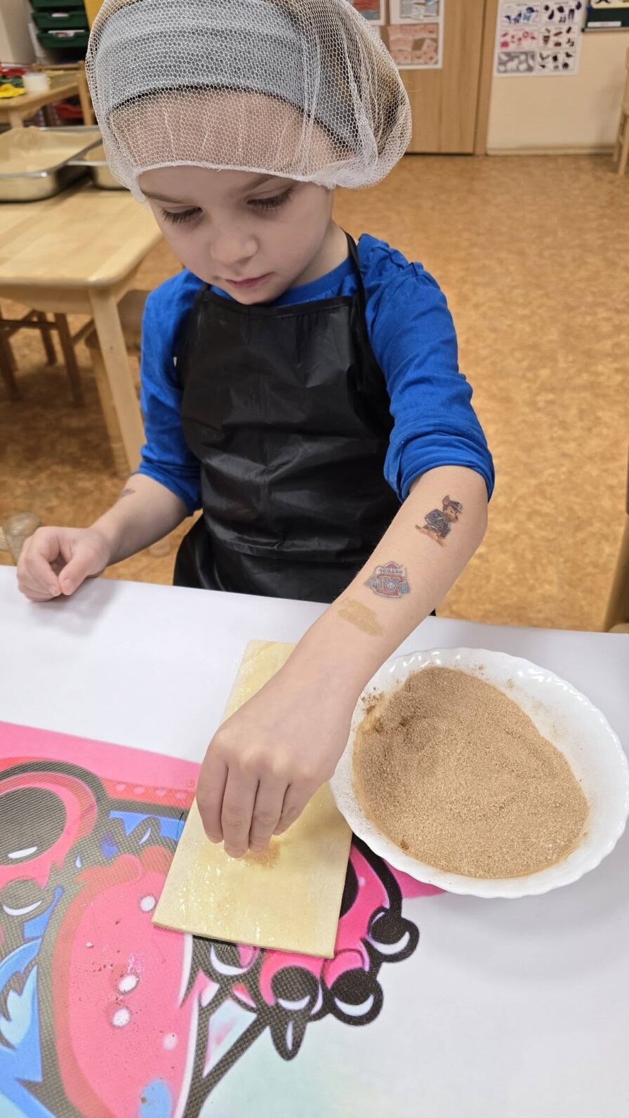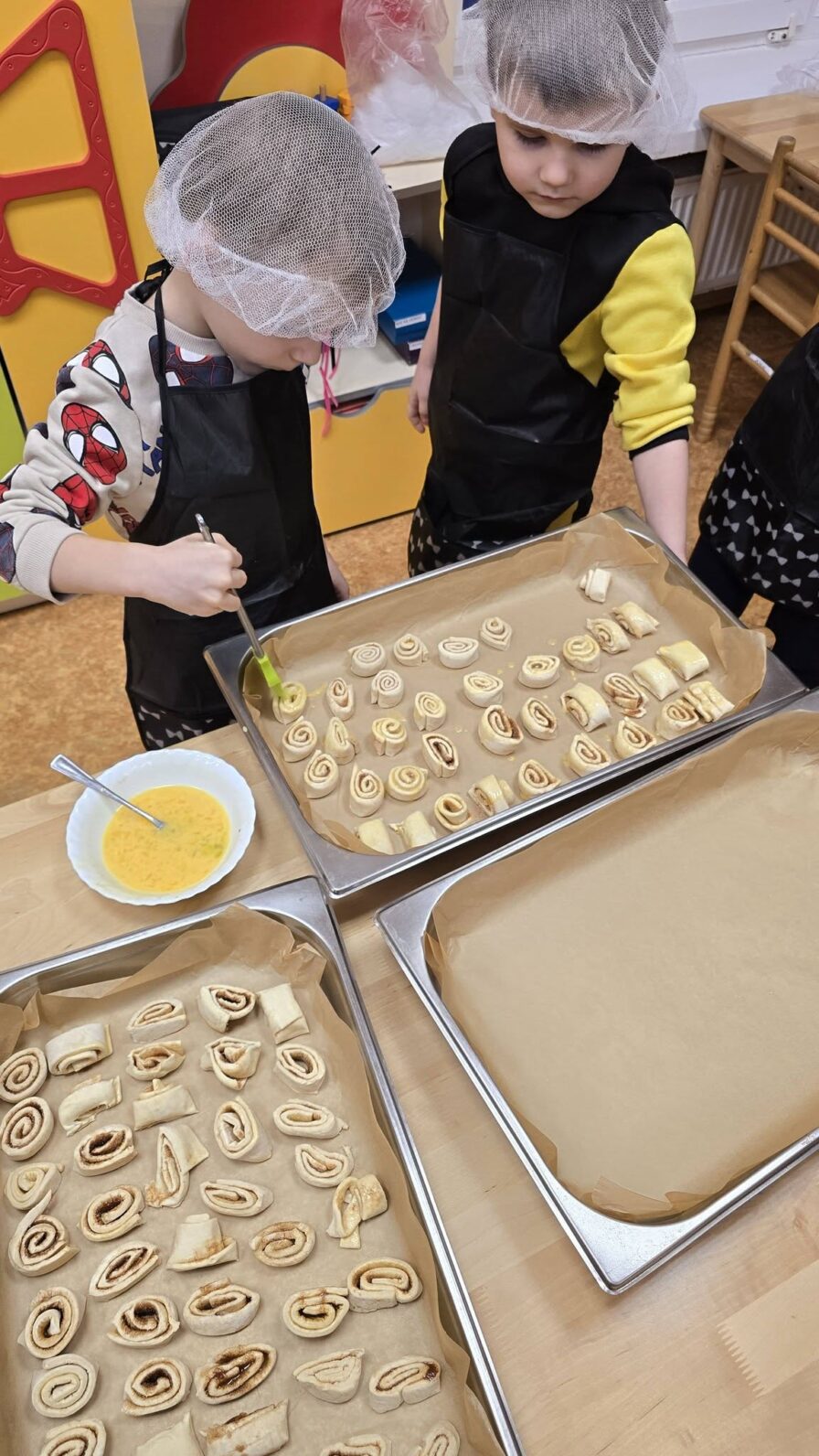 Vaikai tapo tikrais mažaisiais kepėjais – kartu kepėme bandeles su cinamonu. Mažieji noriai minkė tešlą, barstė cinamoną, mokėsi kantrybės ir komandinio darbo.