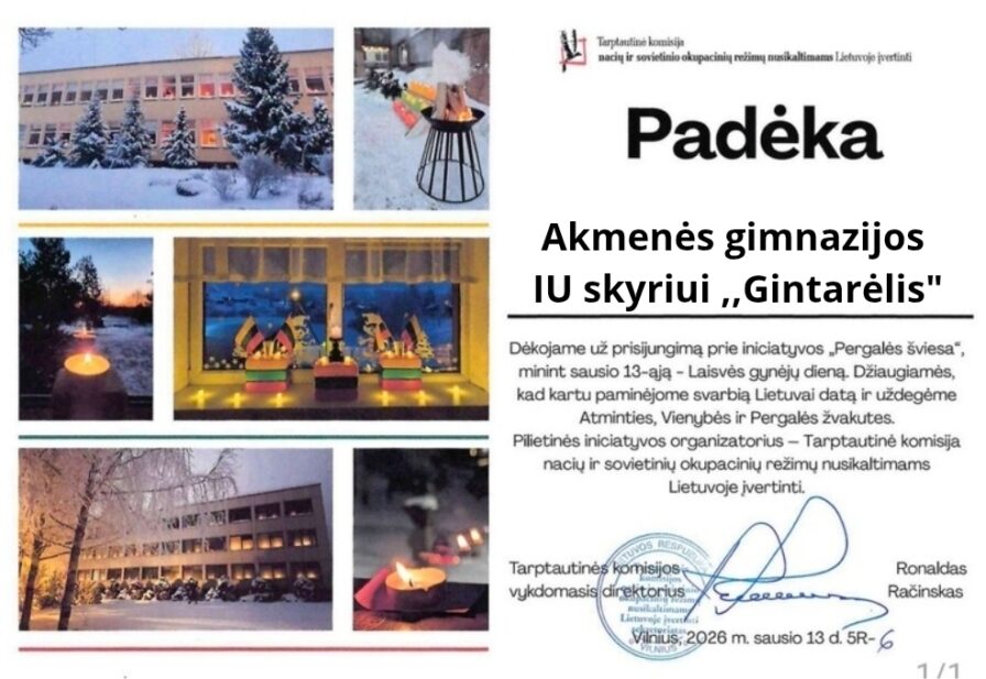 Sausio 13-osios minėjimas Akmenės gimazijos IU skyriuje ,,Gintarėlis”.