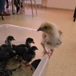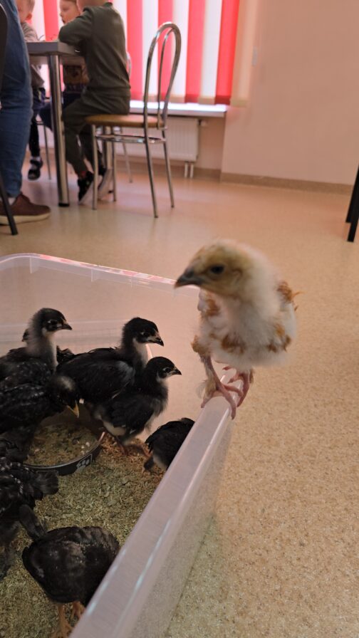 Edukaciją papildė ir artima pažintis su tikrais viščiukais. Vaikai juos galėjo stebėti, paglostyti, pasidžiaugti.