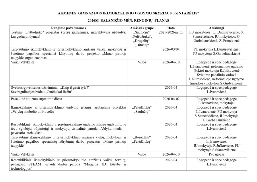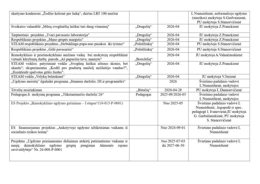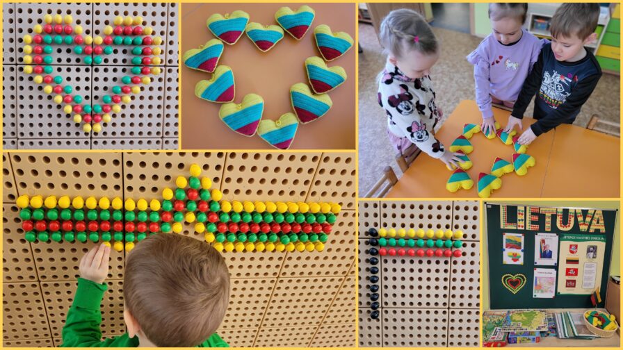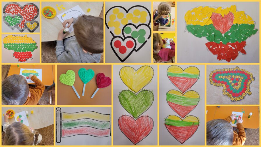 Su „Saulučių“ grupės vaikais aktyviai dalyvavome įvairiuose projektuose ir parodose Lietuvos tema. Veiklų metu vaikai piešė, aplikavo, kūrė tautines juostas, įsitraukė į STEAM veiklas, taip pat išbandė netradicines kūrybos formas – piešė ir purškė spalvas ant sniego. Šios veiklos skatino vaikų kūrybiškumą, smalsumą bei leido patirti džiaugsmą kuriant.