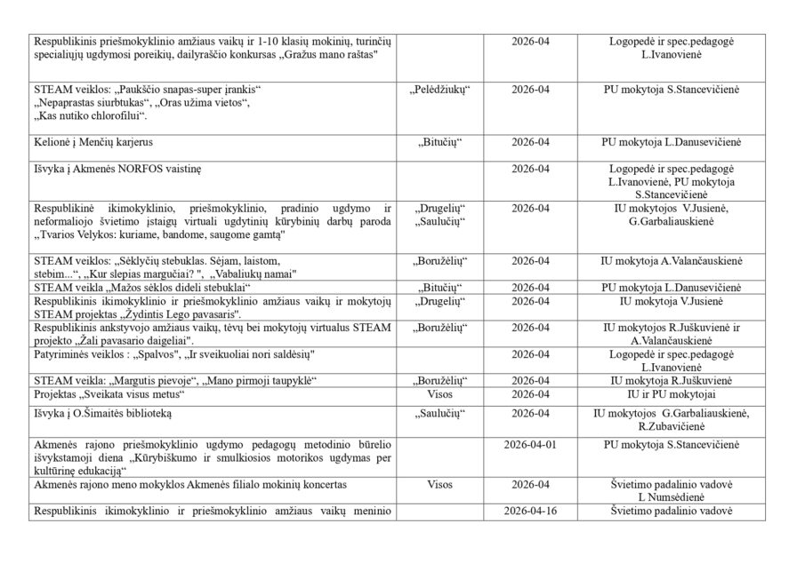 Saulei mirksint, pavasariui giliai alsuojant, kartu su Velykų Bobute (neformaliojo ugdymo(muzikos) mokytoja S. Girdvainiene, Zuikiu ir Zuikute (logopede, spec. pedagoge L. Ivanoviene ir švietimo padalinio vadove L. Numsėdiene ), oi, kaip spalvingai atšventėme Velykėles. Vaikai ieškojo paslėptų staigmenų, rideno margučius, dalyvavo linksmose estafetėse ir džiaugėsi pavasariška nuotaika. Kiekviena veikla buvo kupina džiaugsmo, juoko ir bendrystės.