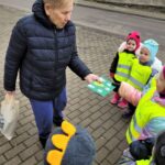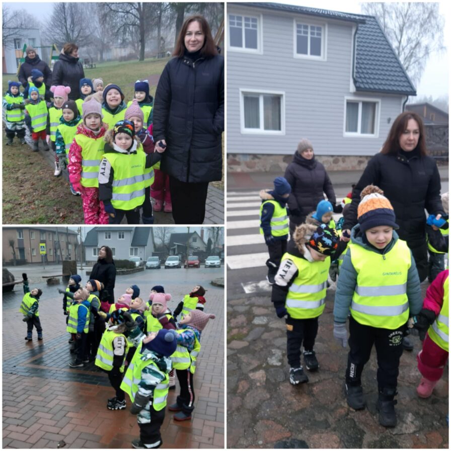 Eidami mieste prisiminėme saugaus eismo taisykles: kaip taisyklingai pereiti gatvę, saugiai elgtis einant šaligatviu. Išvyka vaikams suteikė daug džiugių emocijų, šventinio laukimo jausmą bei prasmingų patirčių už darželio ribų.