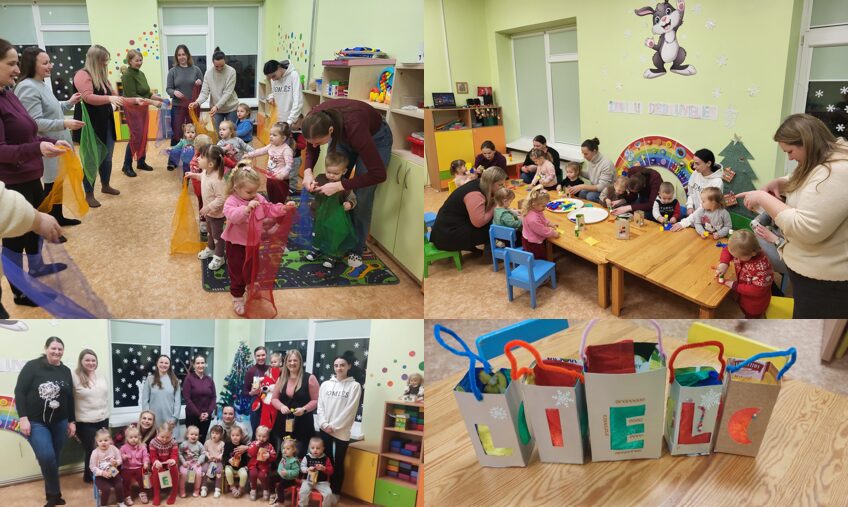 Gruodžio 3 d. popietę, ankstyvojo amžiaus grupės „Kiškučiai“ vaikučiai kartu su tėveliais rinkosi į „Žibintų gaminimo dirbtuvėles“. Žibintų gaminimas prasidėjo nuotaikingai – vaikai, padedami muzikos mokytojos Simos, susirinko dainai, šokiui su skarelėmis ir smagiam pirštų žaidimui „Maža maža pelytė“. Linksma muzikinė veikla subūrė visus į vieną ratą, sukūrė šiltą, nuotaiką ir įvedė į kūrybinį procesą