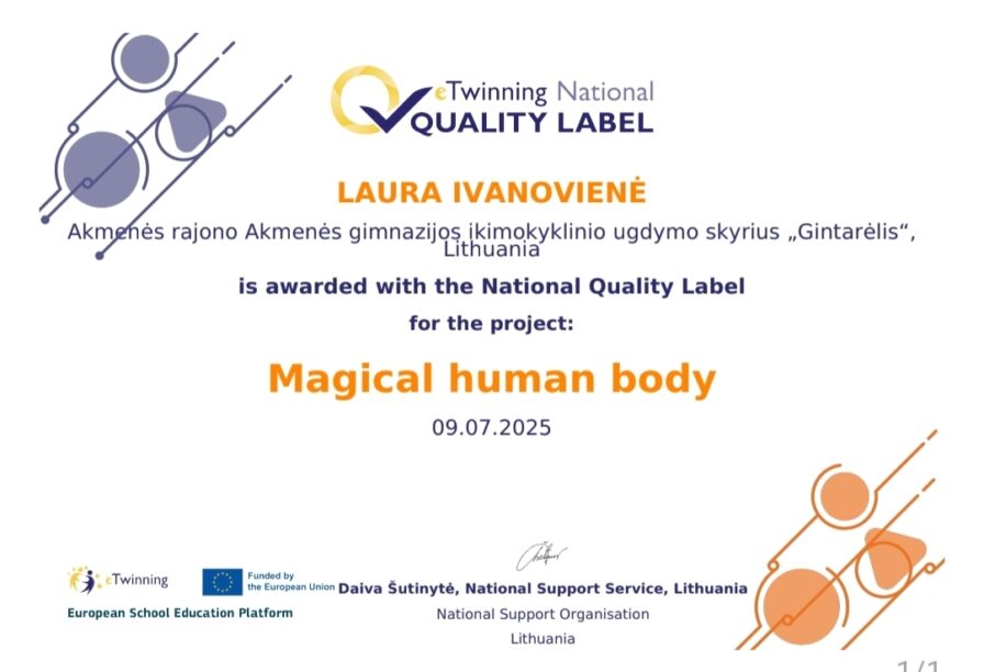 Už Tarptautinio eTwinning projekto „Mano mergutis/ My easter egg” organizavimą ir aktyvų dalyvavimą suteiktas eTwinning Nacionalinis kokybės ženklelis!