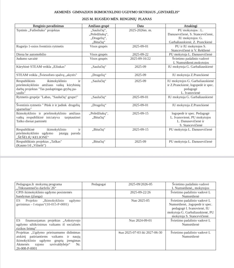 Rugsėjo mėnesio renginių planasRugsėjo mėnesio renginių planas