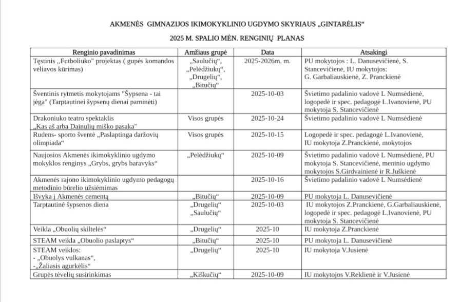 Spalio mėnesio renginių planasSpalio mėnesio renginių planas