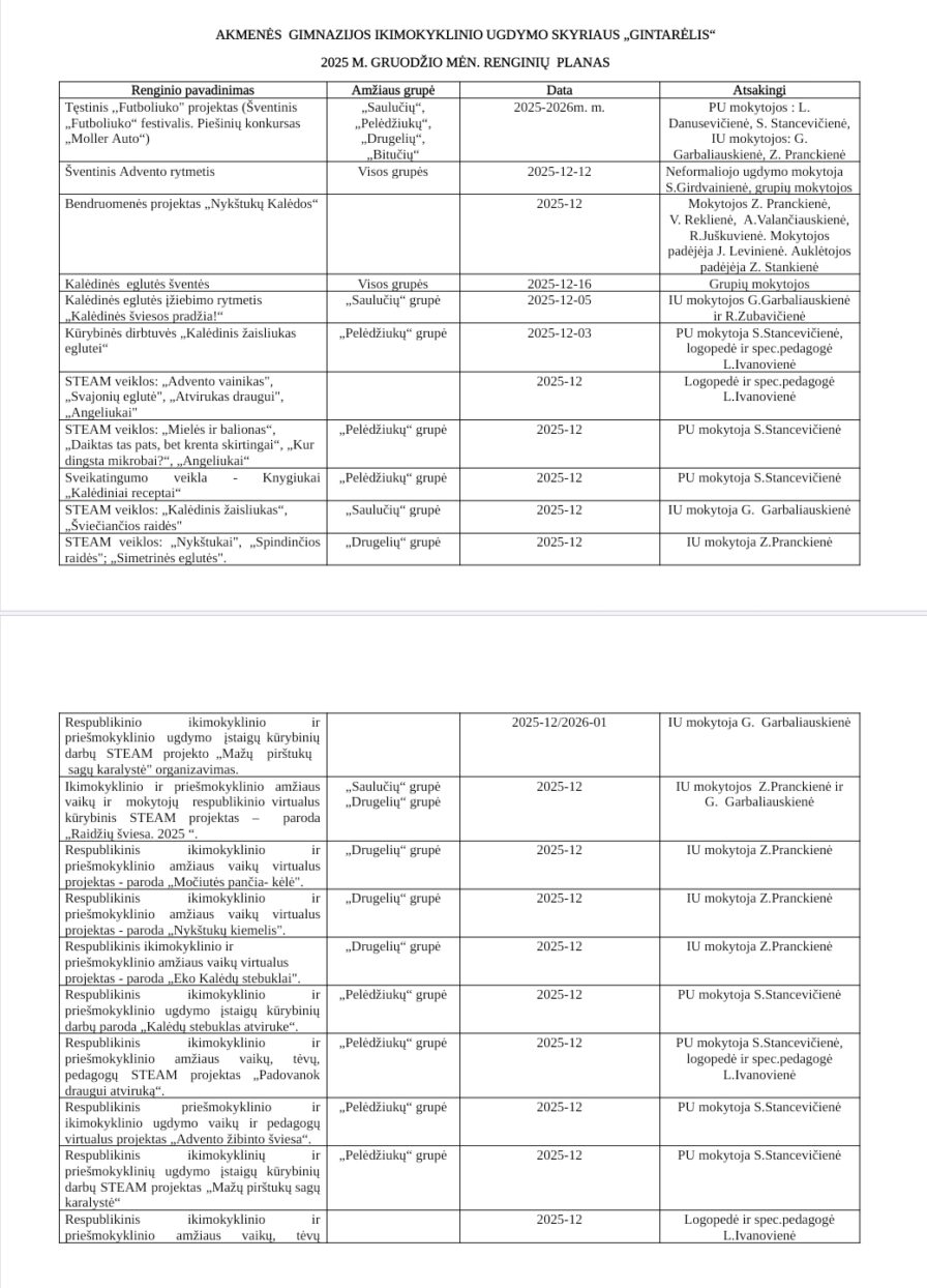 Gruodžio mėnesio renginių planasGruodžio mėnesio renginių planas