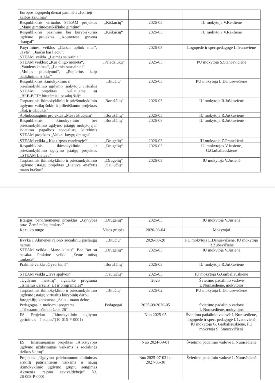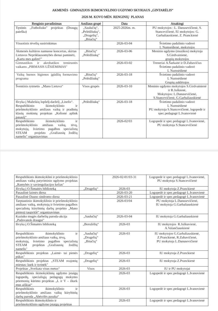 Kovo mėnesio renginių planasKovo mėnesio renginių planas